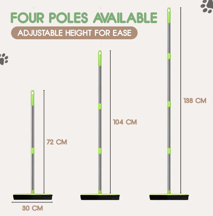 Experience effortless cleaning with electrostatic rubber bristles that magnetize pet hair and a built-in squeegee for versatile wet or dry messes.